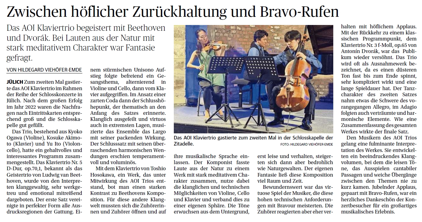 Karriere bedeutete. Das AOI Trio wurde 2016 von Kyoko Ogawa (Violine),